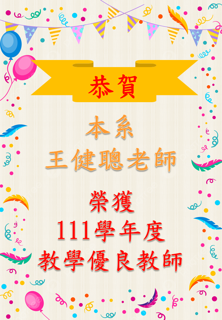 2023-11-09 恭賀~王健聰老師榮獲111學年度教學優良教師