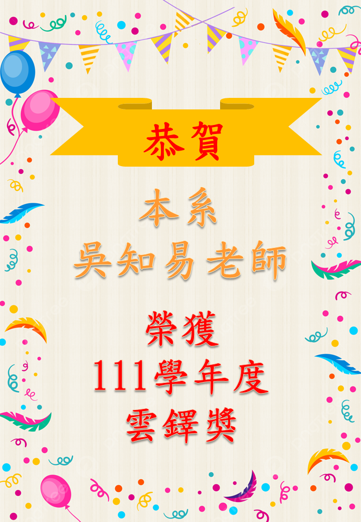 2023-11-22 恭賀~吳知易老師榮獲111學年度雲鐸獎