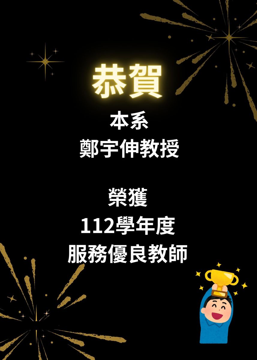 2024-11-29 恭賀!本系鄭宇伸教授榮獲112學年度服務優良教師