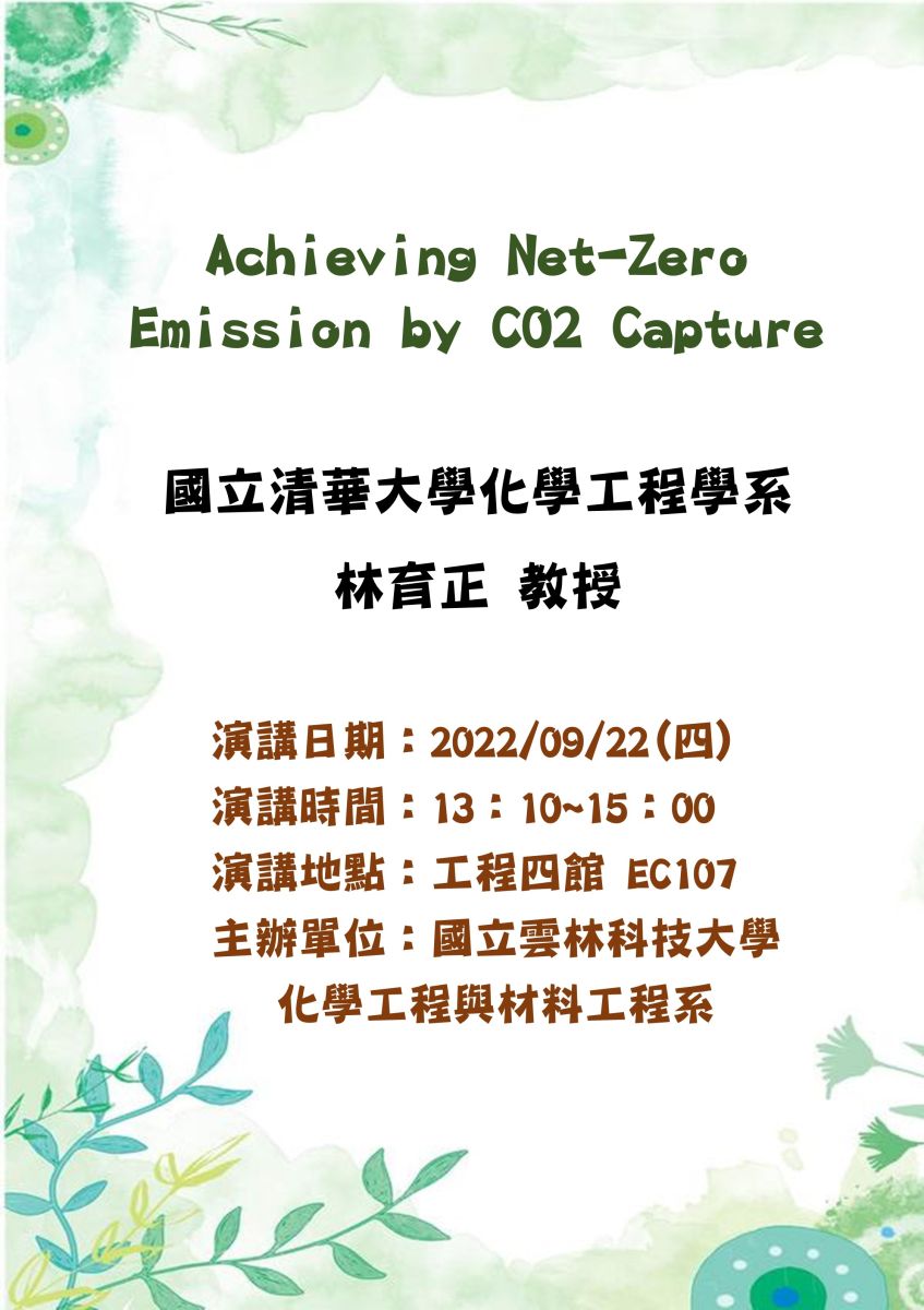 2022-09-22 演講-Achieving Net-Zero Emission by CO2 Capture