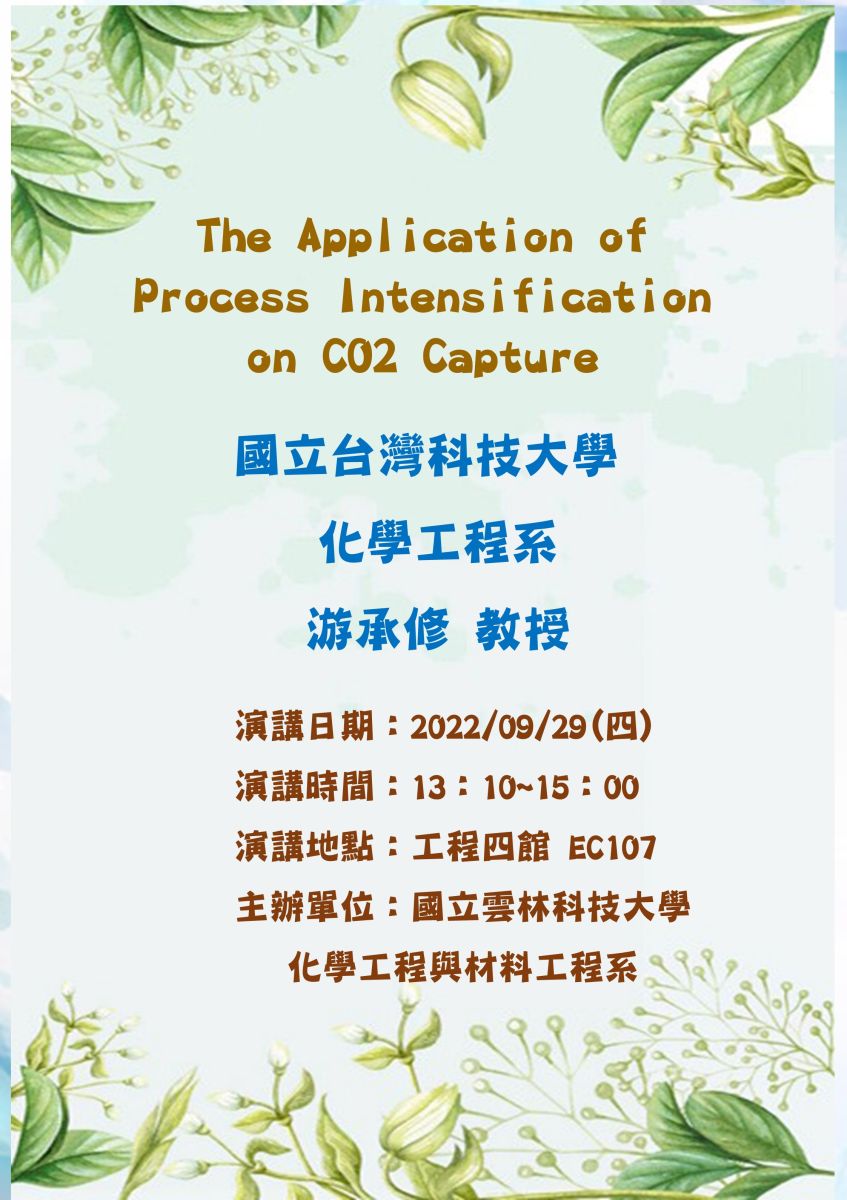 2022-09-29 演講-The Application of Process Intensification on CO2 Capture